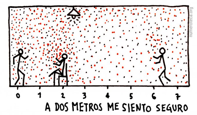 No hay distancia segura en un ambienta mal ventilado y cerrado, ni un metro, ni dos, ni 5, si respiras el aire ya exhalado por otras personas.La mascarilla sirve para filtrar el aire que exhalas y el que inspiras. Si el espacio en el que estás no está ventilado no sirve que te pongas las mascarilla justo antes de que entres otra persona.