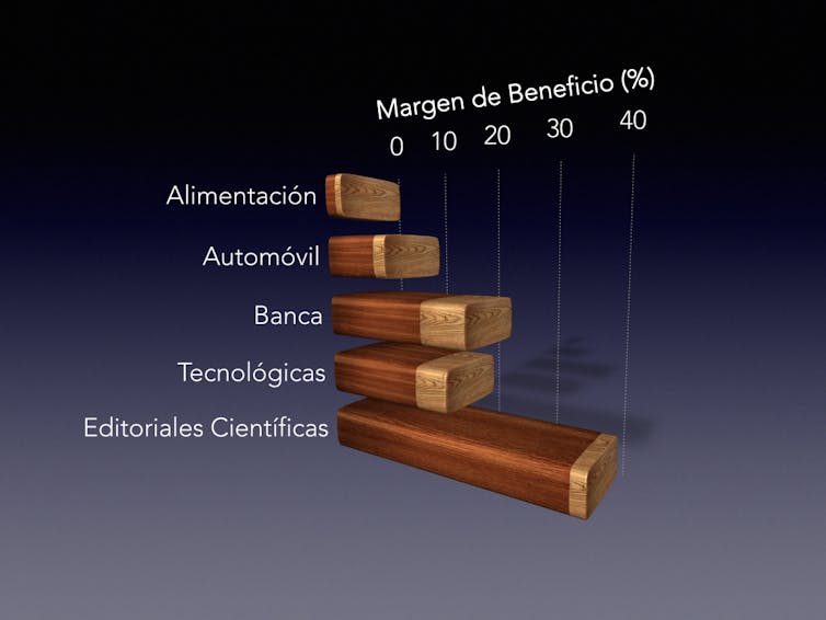 ¿Cómo pueden tener un margen tan elevado? Por un lado, los autores pagan por proporcionar los manuscritos, la materia prima del negocio. Si hacemos un símil con un supermercado, sería como si el agricultor que le ofrece las naranjas no solo no cobrara por ellas, sino que pagara. Los revisores tampoco cobran por su trabajo, sería el equivalente a que el transportista que lleva esas naranjas desde los huertos hasta el supermercado no cobrara por ello e incluso corriera con los gastos de combustible.
